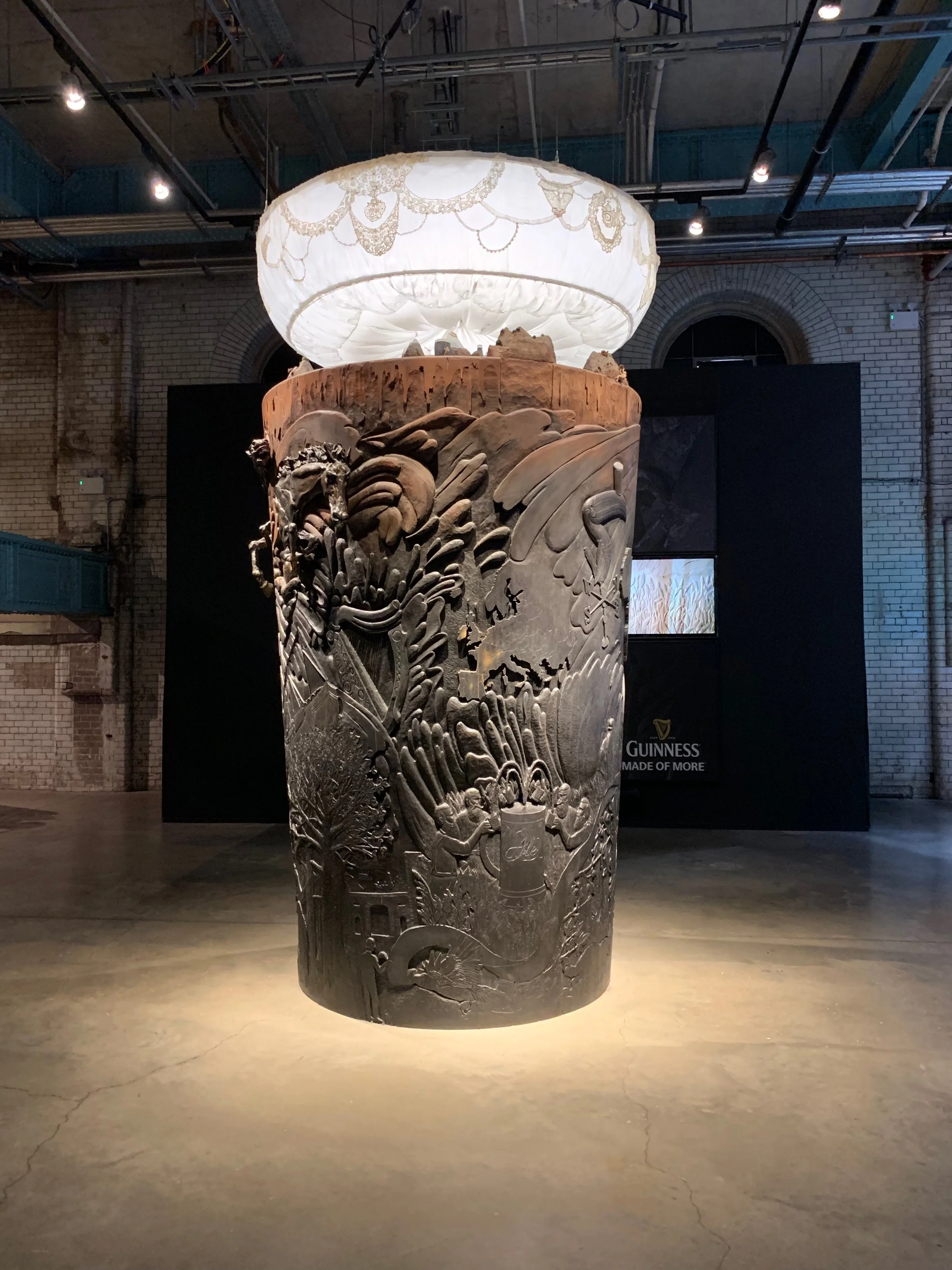 Next we walked to the Guinness Storehouse and went on the tour. It was 7 floors, but the displays were awesome. I was particularly impressed with the information graphics and the motion graphics. The tasting was funny; the man walking us through the tastes and smells we were supposed to experience when enjoying Guinness asked if any of us had never had Guinness. I was the only one to raise my hand and this man standing near me gave me the most incredulous look. It was so funny...to me. The man walking us through the tasting also told us the blessing (be in good health) Shalauntamach (sorry for the phonic spelling). Nancy liked the waterfall and the hops displays. Dad seemed to like it, though he says he doesn’t care much for beer. He did like the blonde Guinness. I’m still not a fan of beer.